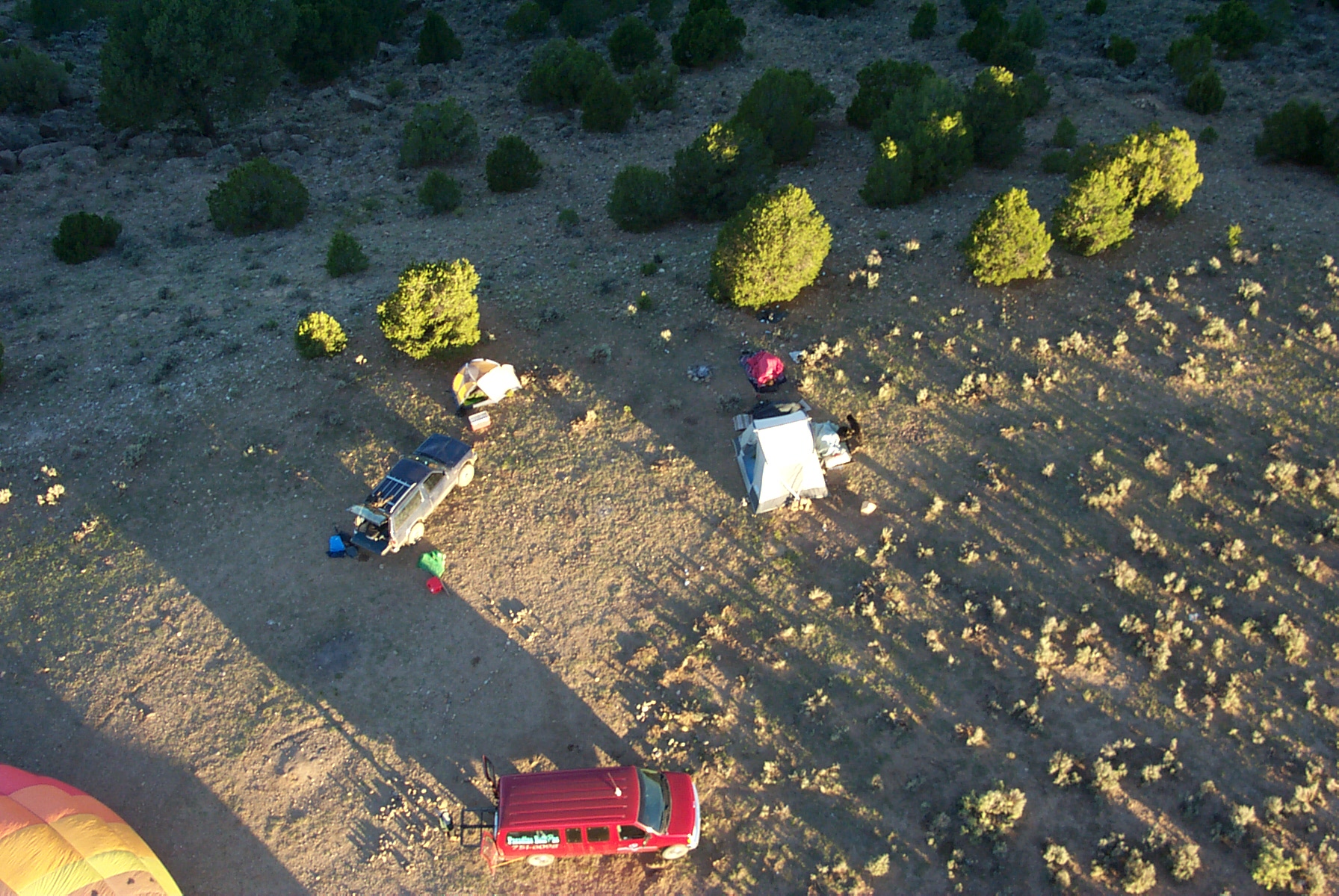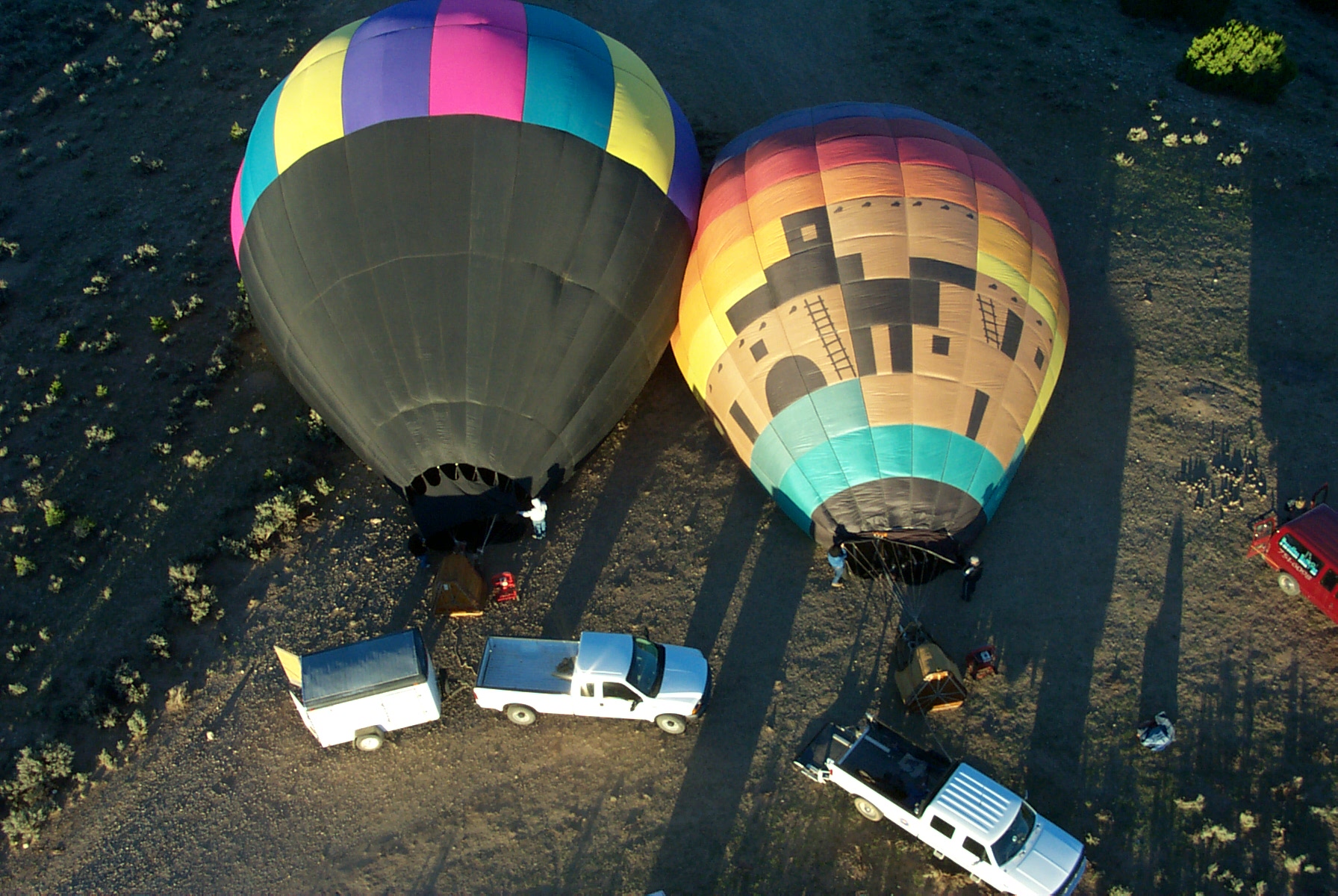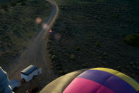 Join us on an exciting trip into the Rio Grande Gorge just west of Taos, New Mexico. Our trip starts at 6am when we meet our balloon crew at the blinking light north of Taos -- an old Taos landmark now replaced by a modern intersection. We load up and drive on the highway west for a few miles and then turn northwest and on a series of old dirt roads to our launching point. We launch shortly after sunrise and then the pictures begin.