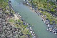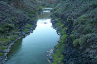 While the water is low, you can see the rapids that form the Taos Box -- a class 4 whitewater rafting trip. |