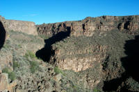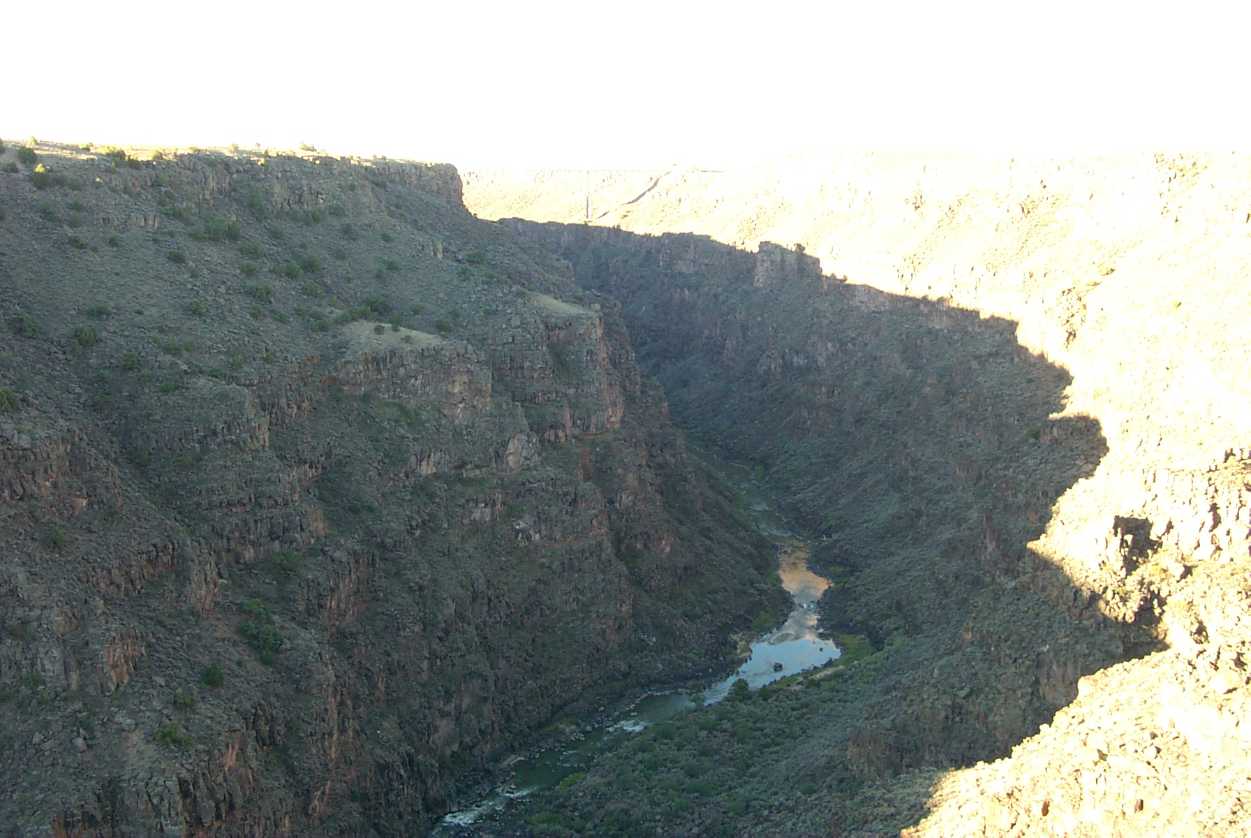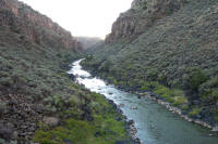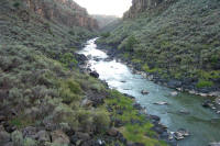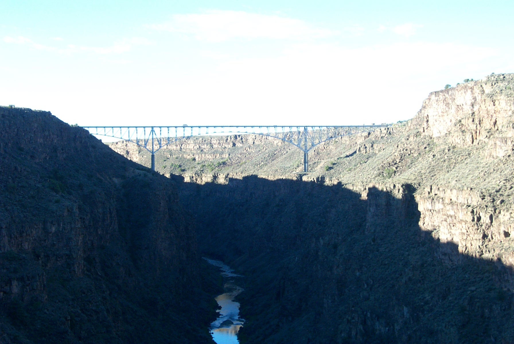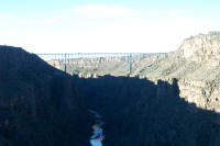 The Rio Grande Gorge bridge which towers about 600 feet above the bottom of the gorge. Our landing point is just beyond the bridge. |